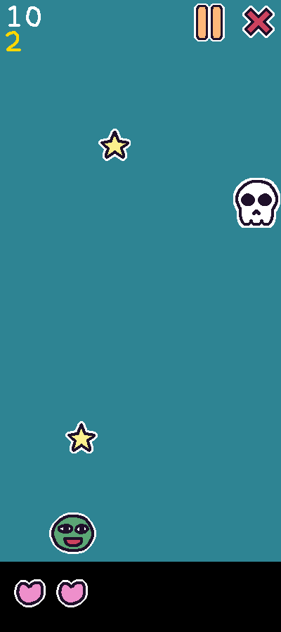 My first game made with KAPLAY. You collect stars and moons, which give you 1 and 3 points, respectively. But, be careful of the skulls because they decrease your life. Try to get the highest score!